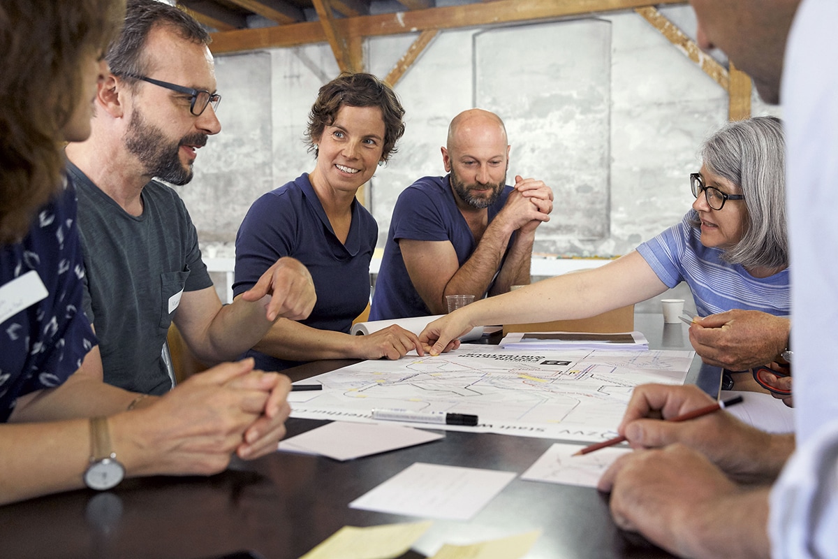 «Eine lebensfreundliche Stadt braucht viel Mobilität» — «Du sollst für lebendige Stadträume sorgen!» — «Der motorisierte Individualverkehr muss als Teil des öffentlichen Verkehrs gedacht werden, erst recht, wenn die Autos in Zukunft selbstfahrend sind.» — «Die Digitalisierung gibt den Verkehrsplanern neue Instrumente in die Hand.» Die Aussagen in der hitzigen Diskussion mit Thomas Sauter-Servaes (Leiter Studiengang Verkehrssysteme ZHAW), Fritz Kobi (Verkehrsexperte), Andreas Sonderegger (Mitglied Gruppe Krokodil/IKE ZHAW) und Mark Würth (Amt für Stadtentwicklung Stadt Winterthur) waren vielfältig. Ausgerüstet mit diesen Behauptungen zogen am Samstag 45 Stadtwerkstätterinnen und -werkstätter zu Fuss, auf dem Velo, im Spezial-Ringbus und mit den öffentlichen Verkehrsmitteln los, den Strassenraum in Winterthur zu erkunden. Die Beobachtungen der sechs Reisegruppen wurden zu folgenden Erkenntnissen zusammengefasst: